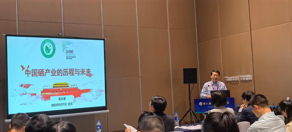 程水源在“第八届青年地学论坛-环境科学分会”作《中国硒产业的历程与未来》的主题报告。程水源围绕硒产业发展历程、硒科普趋势、硒产业的发展远景与愿景、硒产业发展的问与答和团队科研成果等五个方面展开报告。报告指出,要认清硒产业的概念及重要性,硒产业是以硒为核心要素,以促进人体健康为宗旨,以硒资源合理开发利用为基础,由硒农业、硒工业、硒服务业组成的,涵盖第一二三产业部门的全产业链;要明确硒产业的发展经历了四个时期,从“发现硒”向“认识硒”、“应用硒”的转变。他提出,在硒产业3.0时代,是以“硒+X”为主导的产业发展模式,硒元素为主体,其他要素为载体,硒产业成为既相互融合、又相对独立的产业体系,依靠科技和检测手段的进步,提高附加值,增加产品的核心竞争力;进入到硒产业4.0时代,即“硒+X”的升级版或无极版,硒可以游离于载体单独发挥作用,也可成其为产业。他希望,借助“健康中国”战略和乡村振兴战略,助推硒产业上升为国家战略。相较其他人体必需微量元素,硒具有特殊性,可服务于多项国家战略需求,很少有元素像硒一样受到国家高层与科学家的高度关注与认可。科研工作者要以“为有牺牲多壮志,敢教日月换新天”的精神,从科学研究、团队建设与人才培养、社会服务和科学普等方面着手助推硒产业上升为国家战略。报告还就硒的形态及剂量安全问题、硒重金属伴生问题、硒产业与科研的关系、天然富硒与人工强化的关系及硒与预制菜的前景和路径等几个方面的问题进行了阐述。最后,程水源介绍了团队两项科研成果“植物源富硒可食用因子加工与利用关键技术创新与应用”和“富有机硒植物培育与加工利用关键技术及应用”方面的研究在硒科学与工程领域达到了国际领先水平。