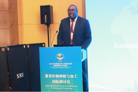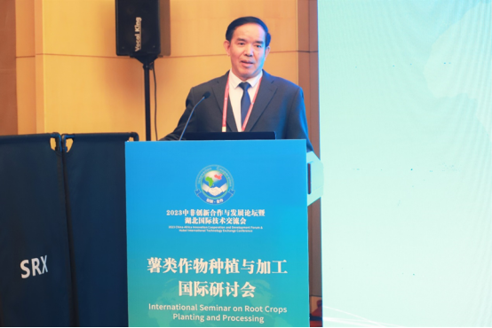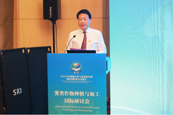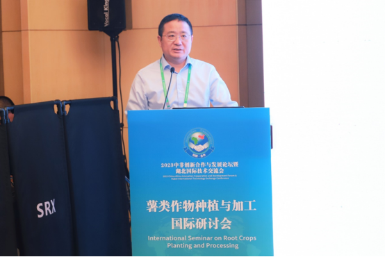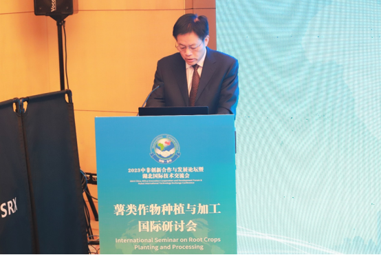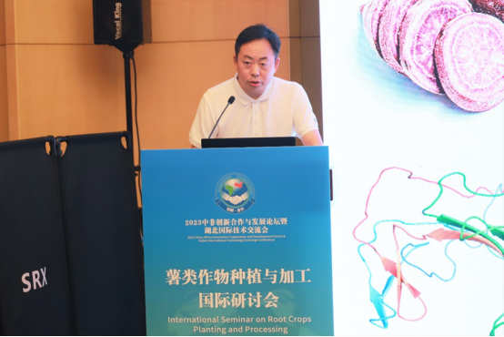 戴新明代表湖北省科技厅对参会嘉宾表示热烈欢迎。他介绍了湖北省薯类作物的现状,并表示湖北省科技厅一直以来积极推动薯类作物种植加工相关的科研项目,致力于打造创新平台,助力薯类农产品加工业的高质量发展,推动中非农业经济互利共赢,共同发展。