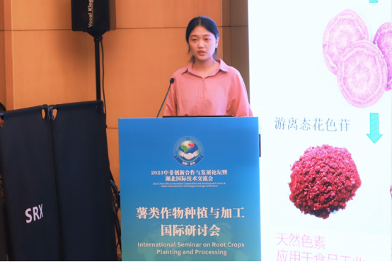 本次研讨会以“薯类作物种植与加工为主题”“薯类作物种植与加工”为主题,围绕薯类作物种植、薯类加工、木薯高附加值产品开发等议题展开。中国科学院张鹏研究员介绍了我国木薯来源及产量及贮藏根发育和淀粉生物合成调节机制,强调薯类在全球粮食安全起到非常重要作用。刚果(布)萨苏大学董事长Ange Antoine Abena教授对刚果共和国木薯生产现状及遇到的机遇与挑战进行了阐述。湖北省农业科学院王连军研究员围绕甘薯的种植情况、保健功效、品种以及相关产品开发等方面,全面总结了中国甘薯产业的发展现状。suncitygroup太阳新城何静仁教授的报告围绕结合态花色苷的结构组成以及其抗炎/降血糖活性功能机制展开。中国热带农业科学院张振文研究员展示了木薯叶的研究现状及技术手段,并展望了未来的研究方向。尼日利亚Matthew Ikade Ugbem主管介绍了尼日利亚木薯生产和加工的机遇与挑战。珠海华成生物科技有限公司梁国涛围绕木薯初加工及深加工进行报告,并重点介绍了木薯在南美、非洲、亚洲的食品领域中的应用。suncitygroup太阳新城硕士生梁金骁介绍了酵母发酵木薯粉及其及其食品开发。suncitygroup太阳新城硕士生徐梦介绍了不同品种紫薯间营养成分的差异化组成,筛选适用于提取花色苷和蛋白质等功能性营养素的品种,在此基础上进行了紫薯资源加工贮藏和合理应用的研究。