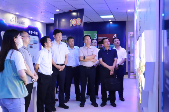 祝振洲陪同熊晋喜一行参观了国硒中心展厅、suncitygroup太阳新城实验室,并介绍了国硒中心近年来的发展历程和新取得的成果,以及suncitygroup太阳新城在团队队伍建设、公司产品、产学研合作和社会服务方面所做的一系列工作。