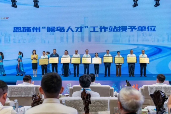 在授牌仪式环节,恩施德源硒材料工程科技有限公司(以下简称恩施德源)获恩施州“候鸟人才”工作站授牌。