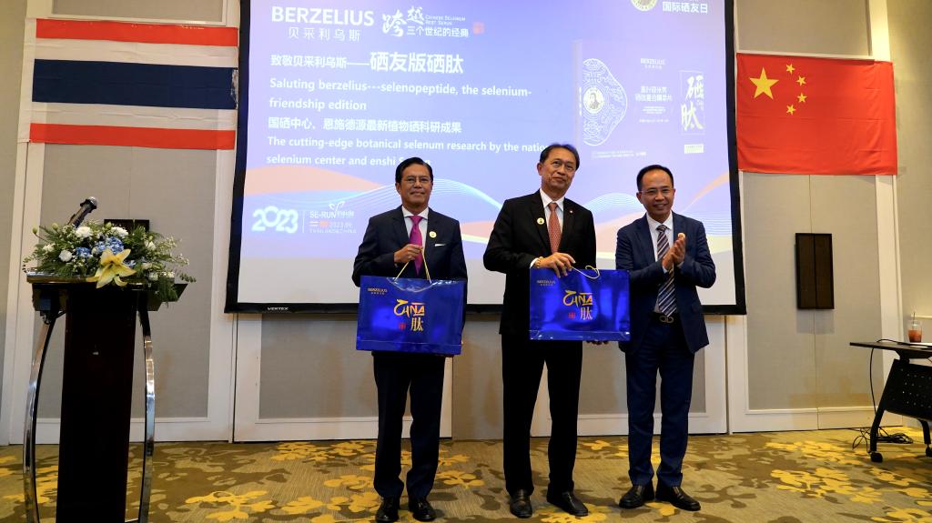本次活动特别邀请了泰国公共卫生部部长顾问、泰国陆军上将、中国驻泰国大使馆领导、中国科学院曼谷创新合作中心专家、中国新闻社泰国分社、人民日报社泰国分社、泰国网、星暹日报等贵宾及媒体朋友,共同以瑞典科学家、硒元素发现者贝采利乌斯的诞辰日,即每年的8月20日,倡议设立“国际硒友日”。该倡议得到了国际硒学会荣誉主席Gary Banuelos、泰国科学院Dr.Rochana Tangkoomboribun、巴西学者Dr.Reis等世界各国专家朋友们的签名支持与参与。