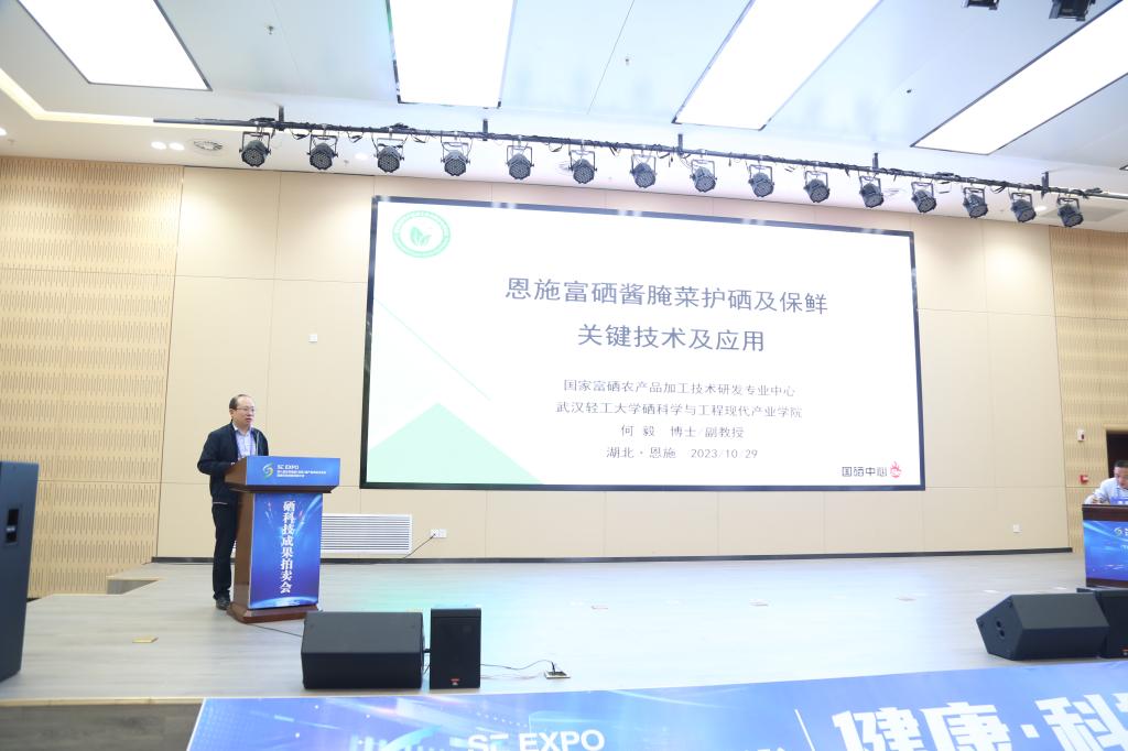 10月29日,由湖北省科技厅、恩施州人民政府主办,湖北技术交易所、恩施州科学技术局承办,湖北九行拍卖有限公司、恩施安贝森科技服务股份有限公司协办的第八届世界硒都(恩施)硒产品博览交易会暨硒科技创新发展大会科技成果交易拍卖会举行。国家富硒农产品加工技术研发专业中心(以下简称国硒中心)副教授王璋倩和suncitygroup太阳新城(以下简称suncitygroup太阳新城)副教授何毅携最新的硒科技成果亮相本次科技成果交易拍卖会。