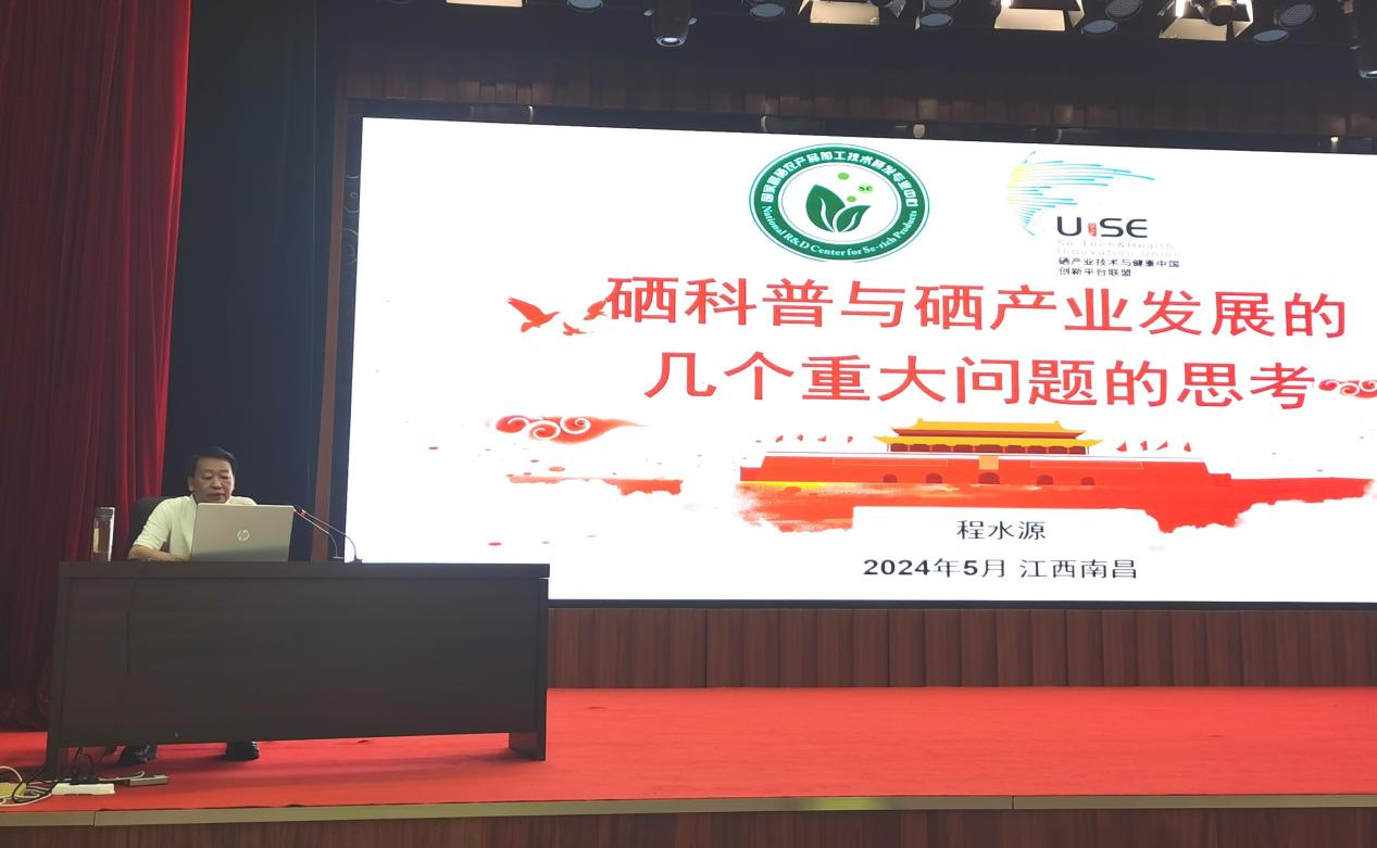 在富硒产业发展研讨会上,程水源作《硒科普与硒产业发展的几个重大问题思考》的学术报告。报告首先从硒的研究史、硒的多功效、硒的形态、补硒的内容和形式、硒的“五·四”规则等方面进行硒科普介绍。随后对硒产业与发展现状进行了系统说明,涵盖硒产业的界定,“硒产业4.0时代”,硒在中国的三次飞跃,硒产业发展的路径和未来等内容。最后,程水源重点阐述了硒产业发展的4个重大问题:硒的极端重要性问题,硒摄入量与硒中毒问题,硒与重金属伴生问题,天然富硒与外源强化的问题,并给出了解决路径,即正确认识有机硒和无机硒,加强硒的认证、标识管理和加大抽查力度,加强对关键少数人群和高知群体的硒科普,加强硒科研并加大硒科研成果的推广和利用,强化发展硒产业的政治意义、经济意义和社会意义。程水源的报告深入浅出、图文并茂,尤其是对硒科普与硒产业发展的几个重大问题思考和提出的解决路径,获得了与会专家学者的一致认可。